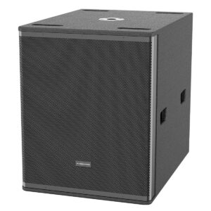 Subwoofer pasivo con un componente Beyma de 15” pulgadas, respuesta de frecuencia 48 – 300 Hz, potencia AES estandard de 700 W. cobertura nominal: 100°×20°.