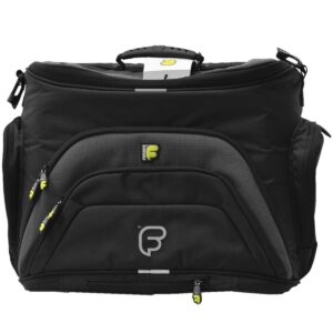 Estuche Fusiona para computadora portátil mod. F1-99 CXL BK. Resistente al agua, relleno de alta densidad. Bolsa con compartimentos de almacenamiento de archivos y organizador interno, 2 grandes bolsillos en la parte delantera de la bolsacon bolsas compensadas. Color Negro.