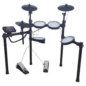 Batería electrónica de 7 piezas con 227 sonidos, 15 drumsets, incluye un módulo SM-100, una tarola de 7.5” pulgadas con parche de malla, 3 toms de 7.5” pulgadas con parches de malla, pedal controlador de bombo, pad de hihats de 10” pulgadas con pedal controlador de hihats, 2 pads de platillo de 10” pulgadas, puedes ajustar el volumen de cada tambor y platillo, parámetros MIDI y ajustes de trigger, soporte para grabación, reproducción y loop, soporta MIDI USB, incluye 15 canciones de acompañamiento por defecto y asistente de metrónomo.
