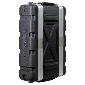 Estuche de 2 unidades de rack de 19” de bajo perfil, fabricado con polietileno FORCE y aluminio, profundidad interior utilizable: 208 mm, 4 pestillos, 2 manijas, tapas equipadas con un práctico bolsillo de malla con cierre para guardar cables y accesorios. Dimensiones del producto: 18 x 56.5 x 37 cm. Peso: 4.43 Kg.