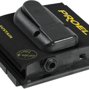 Pedal sustain Proel para guitarra. Modelo: GF-20. Switch temporal de sustain. Materiales de construcción: Termoplástico ABS, aluminio con pies antideslizantes yranuras empotradas. Ancho: 98 mm. Alto: 45 mm. Profundidad: 90 mm. Peso: 0.16 Kg. Color negro. Fuente de alimentación: 0.3A/30V DC. Salidas: NR.1 socket mono jack hembra ø 6.3 mm. Controles: Switch de polaridad.