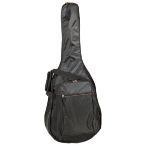 Funda para guitarra acústica, fabricada con nylon 420D acolchado a prueba de rasgaduras con bandas exteriores de tela, color negro, correas de velcro ajustables reforzadas con anillo de metal, dos amplios bolsillos delanteros para libros de música y accesorios, resistentes cierres con etiquetas de extracción.