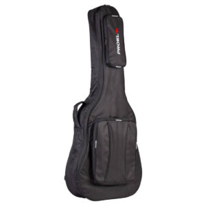 Funda PROEL para Guitarras acústicas de Poliéster 600D acolchado a prueba de desgarros y acolchado de poliuretano de alta densidad y forro de nylon 90D con inserción reforzada. Práctica asa lateral para el transporte y correas acolchadas ajustables para los hombros con ojales metálicos e inserciones reflectantes. Bolsillo superior para accesorios y bolsillo frontal amplio para partituras y accesorios.Cremalleras duraderas con tirador de metal fundido