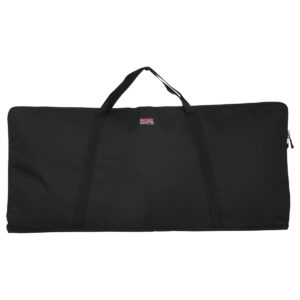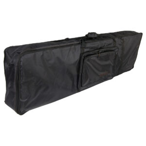 Funda para teclado Proel modelo BAG930PN. Dimensiones: 1220 x 160 x 420 mm. Fabricada con nylon 420 acolchado con bordes de tela en el exterior. Relleno de espuma de alta densidad de 20 mm. Color negro. Agarraderas de velcro, manijas fortalecidas. Correas de hombro acolchadas y ajustables. Pies antideslizantes de goma.Bolsa en la parte frontal para libros y accesorios. Cierres resistentes con etiquetas extraíbles.