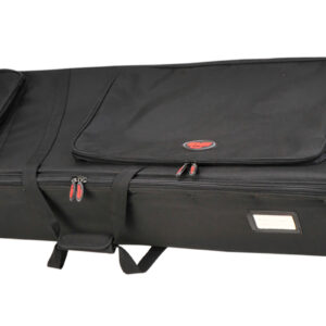 Funda SKB para teclado. Modelo: 1SKB-SC76KW. Para teclado de 76 teclas. Marco demadera robusta. Exterior de nylon Denier 600. Ruedas en línea tipo patín para un mejor transporte. Patas estabilizadoras para mantener el estuche de pie. Escalerillas y rieles de protección. Dos bolsas exteriores para almacenamiento. Correa de hombros tipo mochila. Largo interior: 131.45 cm. Ancho interior: 40.64 cm.Profundidad interior: 17.15 cm. Largo interior: 142.24 cm. Ancho exterior: 45.09cm. Profundidad interior: 22.86 cm. Peso: 8.71 kg.