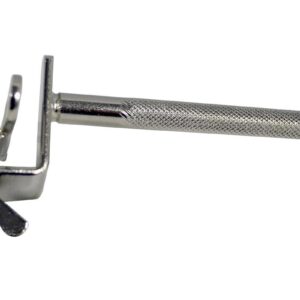 Abrazadera para aro, se ajusta a cualquier tambor, asequible y versátil, puedes agregarle cualquier varilla de 3/8” para agregar aditamentos a tu configuración, incluye una varilla en forma de Z que te permite montar otros instrumentos como un cencerro en cualquier parte del aro del tambor.