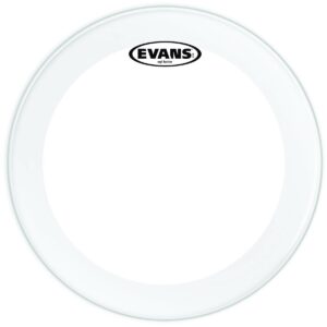 Parche de golpe para bombo de 18” pulgadas, serie EMAD2 Clear, fabricado con doscapas de película, una externa de 6.5 y otra interna de 10 milésimas de pulgada, lo que proporciona un mejorado ataque y durabilidad, terminado transparente, permite ajustar el ataque y el enfoque, hecho en USA.