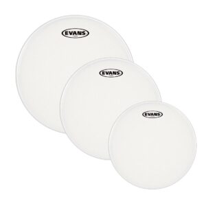Juego de parches Evans para tom. Modelo: ETP-G2CTD-F. Diámetro: 10”, 12” y 14” pulgadas. De golpe. Fabricado con dos capas de película de 7 milésimas de pulgada. Equilibrio entre ataque y sustain. Súper resistente. Terminado rugoso.