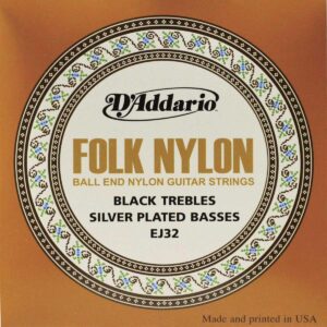 Juego de cuerdas para guitarra con terminaciones de bola, serie Folk Nylon, agudos de nylon negro/entorchado en plata, graves entorchados en plata, agudos de nylon negro, ideales para una variedad de guitarras y opciones de cambio de cuerdas, paquete ecológico y resistente a la corrosión para conservar la frescura de las cuerdas.
