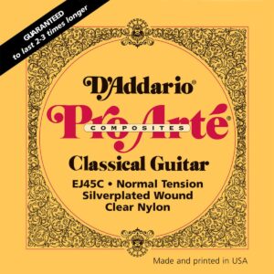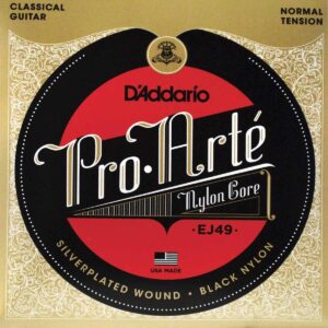 Juego de cuerdas de material compuesto para guitarra clásica, serie Pro-Arte, tensión normal, sensación de comodidad al tacto y proyección dinámica, exclusivo material de multifilamentos trenzados en el núcleo, tono cálido y potente, núcleo de material compuesto exclusivo entorchado en cobre recubierto en plata, paquete ecológico y resistente a la corrosión para conservar la frescura de las cuerdas.