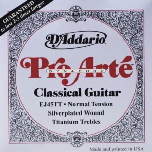 Juego de cuerdas para guitarra clásica, serie Pro-Arte Dynacore, agudos de titanio, tensión normal, material de multifilamentos trenzados para el núcleo, que utiliza una técnica revolucionaria de devanado, tono único y contemporáneo, estabilidad de afinación y consistencia mejorada, tono brillante y con proyección, núcleo de material compuesto flexible para un mayor potencial de proyección y un tono pleno y redondo.