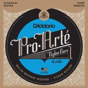 Juego de cuerdas de nylon con entorchado en bronce 80/20 para guitarra clásica, serie Pro-Arte, tensión dura, tono acústico brillante, mayor resistencia y proyección potente, paquete ecológico y resistente a la corrosión para conservar la frescura de las cuerdas.