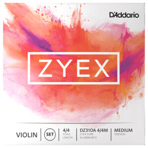 Juego de cuerdas para violín, núcleo sintético de Zyex, tensión media, aptas para violines de 4/4 con una longitud de 13” pulgadas (328 mm), se incluye cuerda RE entorchada en aluminio, estuche sellado que proporciona protección contra la corrosión, sonido extremadamente cálido y profundo, tiempo de asentamiento rápido, excelente respuesta del arco, máxima facilidad de uso, amplia gama tonal.