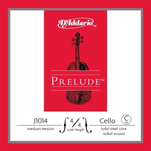 Cuerda individual Do para violonchelo, serie Prelude de D’Addario, escala 4/4, tensión media, apta para violonchelos de 4/4 con una longitud de 27 1/2” pulgadas (700 mm), entorchada en níquel, núcleo de acero sólido, inalteradas por los cambios de temperatura y humedad, excelente respuesta del arco, sonido cálido durable, paquete ecológico y resistente a la corrosión para conservar la frescura de las cuerdas.