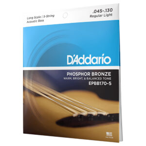 Juego de cuerdas de bronce fosforado para bajo acústico de 4 cuerdas, escala larga, calibre 45-130, tono robusto, profundo y con proyección, paquete ecológico y resistente a la corrosión para conservar la frescura de las cuerdas.