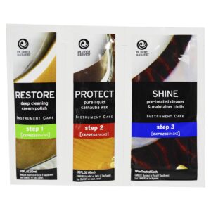 Kit de pulido rápido Planet Waves para guitarra, sistema de pulido en 3 pasos deun solo uso, contiene la cantidad necesaria para utilizar una vez cada producto, incluye restauración, protección y brillo, penetra la suciedad más difícil para pulir marcas de remolino y rayones pequeños, protector y sellador natural, fórmula química avanzada que proporciona un brillo característico, brillo que proporciona un nivel más de belleza satinada.