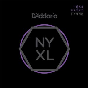 Juego de cuerdas para guitarra eléctrica de 7 cuerdas, nickel wound, medium, 11-64, estabilidad de afinación mejorada, llegan al tono más rápido, permanecen entono por más tiempo, mejorada respuesta en frecuencias medias en el rango de 1 -3.5 kHz, ofrece la más ligera tensión posible, mayor facilidad al tocar, empaque ecológico resistente a la corrosión para mantener las cuerdas siempre frescas.