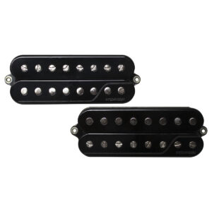 Set de pastilla para guitarra de 8 cuerdas (puente y brazo), color negro, Open Core Classic Humbucker, frecuencia de pico brazo: Voz 1: 2.6 kHz / Voz 2: 4.5 kHz, 350 Hz / Voz 3: 5 kHz, frecuencia de pico puente: Voz 1: 2.25 kHz / Voz 2: 1.6 kHz, 350 Hz / Voz 3: 4 kHz, material magnético: Alnico V, circuito magnético: Barra magnética con polos, espaciado en polo del brazo: 49 mm, espaciado en polo del puente: 52.6 mm, impedancia de salida: 2 k, consumo de corriente: 2.5 mA, batería: 9V o batería recargable opcional, vida de la batería: hasta 200 horas.