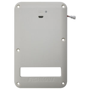 Batería recargable para pastillas Fluence, color blanco, se ajusta directo en la cubierta trasera/vibrato de una Strat, no requiere ninguna modificación en la guitarra, dimensiones: 144 x 90 x 5.85 mm, peso: 2.26 g, vida de la batería: hasta 250 horas.