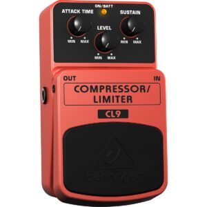 Pedal de efectos compresor / limitador clásico, patea con un poderoso sonido entu guitarra limpia y derrite acero cuando estés tocando guitarra líder con un máximo sustain, suaviza los picos de volumen y proporciona un sustain sin fin condinámicos ultra estables, controles dedicados de tiempo de sustain, nivel y ataque para una formidable formación del sonido, LED de estado para on/off del efecto y para checar la batería, switch electrónico de primera clase de encendido y apagado para una mayor integridad en modo bypass, funciona con una pila de 9V o con un adaptador de corriente PSU-SB DC de Behringer (no incluido), dimensiones:54 x 70 x 123 mm, peso: 0.33 kg.