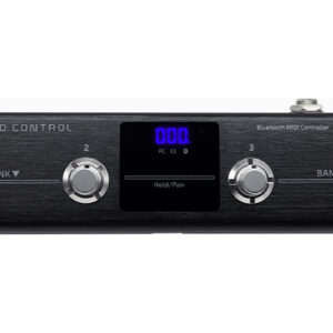 Controlador MIDI Bluetooth compacto e inteligente de 4 footswitches, admite entrada y salida MIDI estándar, USB, MIDI y Bluetooth MIDI input/output/thru, envío y transferencia de mensajes MIDI a salidas MIDI separadas o combinadas, envío máximo de 16 mensajes MIDI por pedal (32 para grupos A/B), 100 bancos (cada banco incluye 4 ajustes de footswitches, 2 ajustes de jack CTRL/EXP y más), diferentes acciones de activación del footswitch para una conmutación flexible y varios usos, la aplicación móvil dedicada te permite configurar fácilmente tu controlador sobre la marcha, 2 jacks TRS CTRL/EXP para adaptar footswitches o pedales de expresión, LED de 3 dígitos para información de mensajes MIDI y visualización del estado de la conexión Bluetooth, fuente de alimentación DC 9-18V o 5V USB, dimensiones: 258.5 x 55.5 x 49 mm, peso: 440 g.