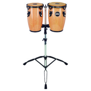 Conguitas de madera de 8” y 9” pulgadas de diámetro, lugs de afinación resistentes de 8 mm, soportes de afinación estilo Meinl originales, aros tradicionales, herrajes con recubrimiento en polvo negro, parches de piel de búfalo seleccionada a mano, fabricados con madera de roble de Siam, color natural, terminado al alto brillo, incluye soporte trípode, inclinación regulable en altura con doble arriostramiento, llave de afinación y llave inglesa.