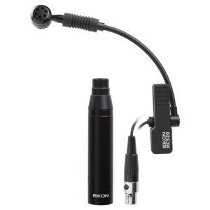 Micrófono de clip para instrumento, transductor: cardioide back electret plate,patrón polar cardioide, respuesta de frecuencia: 50 – 16 kHz, SPL máximo: 130 dB, sensibilidad: -45 dB +- 3 dB, impedancia nominal: 250 ohms, fuente de alimentación: 1,5-3V, adaptador DC, potencia phantom +48V, cable de 1 metro, conectores:Mini XLR de 4 polos, adaptador XLR, accesorios: anti viento, peso: 51 g.