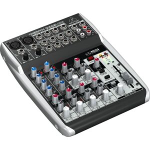 Mezcladora premium análoga, 12 entradas y 2/2 buses, ruido ultra bajo y alto headroom, 4 preamplificadores Xenyx de vanguardia con alimentación phantom, 4 compresores de grado de estudio con de una sola perilla y LED de control, procesador FX Klark Teknik de alta calidad con display LCD, parámetros duales, función Tap y ajustes de parámetros de usuario memorizables, sistema ”Wireless-ready” para usarse con sistemas inalámbricos Behringer de alta calidad, interface USB incorporada para conectar directamente a tu computadora, ecualizador neo británico de 3 bandas por canal, ecualizador gráfico de 7 bandas que permite una corrección precisa de la frecuencia de mezclas principales o de monitor, revolucionario sistema FBQ para detección de retroalimentación que revela frecuencias críticas, impresionante efecto surround XPQ 3D para una mayor vitalidad y una imagen estéreo mejorada, función de cancelación de voz para aplicaciones ”sing-along” fáciles de usar, 4 canales de entrada estéreo completamente equipados con 2 entradas adicionales de micrófono en los canales 5/6 y 7/8 con ecualizador de 3 bandas y control de ajuste de entrada, insertos de canal en cada canal mono para una conexión flexible de equipos externos, 2 envíos auxiliares por canal: 1 pre fader para monitoreo, 1 pre/post fader conmutable para monitoreo/Aplicaciones FX, 1 post fader (para FX interno o como envío externo), 2 retornos auxiliares estéreo multifuncionales, salidas main mix balanceadas con conectores XLR dorados, salida audífonos/control room y salidas rec estéreo, faders logarítmicos de 60 mm de largo y controles giratorios sellados, fuente de alimentación conmutada ”Planet Earth” para máxima flexibilidad (100-240v~), audio sin ruido, respuesta transitoria superior, bajo consumo de energía, dimensiones: 370 x 338 x 90 mm, peso: 3.8 kg.