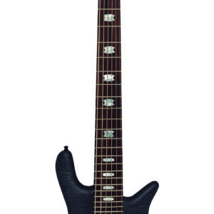 Bajo eléctrico de 6 cuerdas, cuerpo de caoba, tapa plana de maple flameado con nogal, construcción: 6 bolt-on, puente: S-Tek, diapasón de palo de rosa, brazo C delgado de maple/nogal multicapa, incrustaciones de puntos de pearloid, escala: 35” (889 mm), radio del diapasón: 16” (406 mm), 24 trastes X-Jumbo, cejuela de Graph Tech XL Black Tusq, maquinaria Schecter, alma ajustable de dos vías con tornillo Allen de 5/32”, pastilla del puente: EMG 40HZ, pastilla del brazo: EMG 40HZ, control de volumen y blend, ecualizador activo EMG de 2 bandas, batería de 9V, perillas de metal moleteado con tornillo de ajuste.