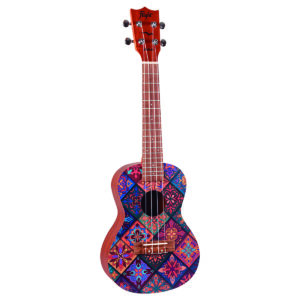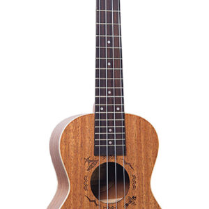 Ukelele tamaño concierto, 18 trastes, tapa, aros y fondo de caoba, puente de palo de rosa, brazo de okoume africano, diapasón de palo de rosa, cejuela y montura de hueso, marcadores de posición en los trastes 5, 7, 10, 12 y 15, espalda arqueada, afinadores die-cast cromados con engranaje abierto, roseta grabada con láser, cuerdas de alta calidad, marcadores de puntos, incluye funda.