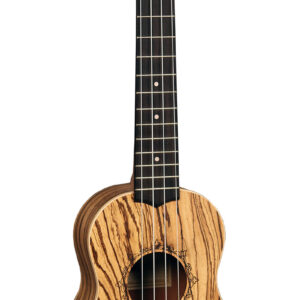 Ukelele soprano, 12 trastes, tapa, aros y fondo de zebrawood, puente de palo de rosa, brazo de okoume africano, diapasón de palo de rosa, cejuela y montura de hueso, marcadores de posición en los trastes 5, 7 y 10, fondo arqueado, afinadores die-cast cromados con engranaje abierto, roseta grabada con láser, marcadores de puntos, incluye funda.