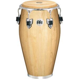 Conga Woodcraft Series de Meinl, 11 3/4” pulgadas de diámetro, parches de piel real de búfalo, lugs de afinación de 10 mm, aros redondeados de 4 mm, hardware cromado, fabricado con tres capas de fresno blanco americano, altura: 30” pulgadas, incluye conga saver, manija en la conga, soundpads, bolsa de accesorios con llave de afinación y aceite.