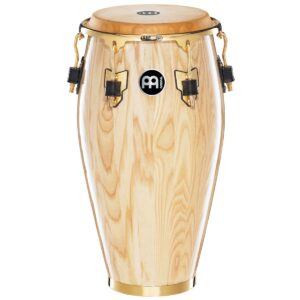 Conga Meinl. Modelo: MSA1134GN. De 11 3/4” pulgadas. Signature Mongo Santamaria. Tono dorado. Ramón Mongo Santamaria es sin duda el ejecutante de congas más grande de todos los tiempos. Meinl le rinde un homenaje con esta elegante serie fabricada con fresno blanco y herrajes dorados.