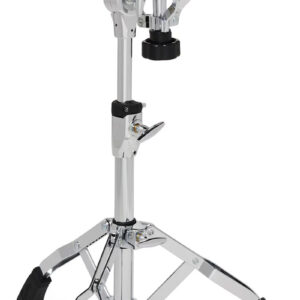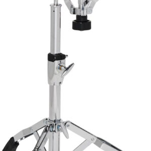 Soporte para tarola, terminado cromado, altura ajustable con acción de suave desplazamiento y ajuste, diseño trípode reforzado de doble solera de 4 mm, canasta de posicionamiento preciso, gran perilla para ajuste de canasta, mariposas en forma de T, seguros de memoria de compuesto de fibra de nylon, patas de goma.