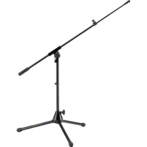 Microphone stand, Quik-N-EZ telescopic boom, Quik-N-EZ adapter for instant microphone attachment, die-cast aluminum base, height: 655mm, weight: 2.1kg, base radius: 325mm, length boom height: 780 – 1220 mm.