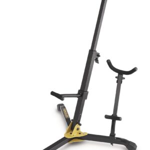 Soporte para saxofón barítono Hercules mod. DS-535B, fácil de transportar, basetripie de máxima estabilidad.