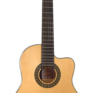 Acoustic-electric guitar with classic body, cutaway, solid cedar top, nato neck, bubinga back and sides, rosewood fingerboard, sonokeling bridge, natural color, KLT-34 active preamp with digital tuner, 4-band EQ , volume and phase, D'Addario nylon strings.