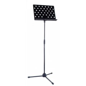 Atril para partitura, fabricado con aluminio, resistencia a los impactos accidentales, práctico sistema afilado integrado, durable y resistente.
