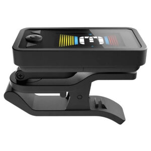 Afinador cromático de clip, ideal para guitarra, bajo y otros instrumentos de cuerda, pantalla giratoria a color, segmentos LCD para estado de carga, rango de calibración de 430 – 450 Hz, diseño compacto, apagado automático, incluye un cable USB para su carga.