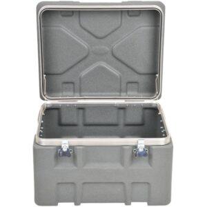 Shipping Case, Stackable Roto-Molded Cargo Container, Accepts Optional Caster Kit (Most Models), Recessed Locking Latches, Recessed Bungee Handles, Interior Length: 23 3/4", Interior Width: 18 3/4", Interior Depth: 16 3/4" cm, outside length: 24", outside width: 20", outside depth: 17.5", depth at lid: 3", depth at base: 13", weight: 22 lbs.