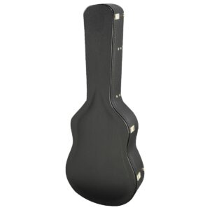 Estuche de madera para guitarras clásicas, mango ergonómico resistente para un agarre cómodo que equilibra perfectamente el peso de tu instrumento, cierres de bloqueo, almacenamiento de accesorios, fabricada con madera de alta resistencia que soporta años de uso y abuso, revestimiento de PVC Tolex negro que crea un exterior resistente a la humedad, grueso forro de felpa que mantiene tu guitarra amortiguada contra impactos, espacioso compartimento interior que organiza todos tus accesorios de guitarra favoritos, cerrojos cromados.