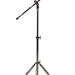 Cymbal stand with boom, 400mm length, 360 degree swivel, rubber feet, double slat feet, chrome finish.
