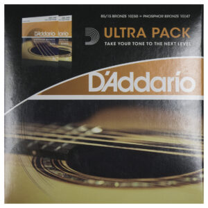 Paquete de encordaduras EZ900 y EJ15 para guitarra acústica, la encordadura EZ900 es de tensión media blanda de bronce 85/15, 10-50, calibre híbrido original de D’Addario, para rasgueo intenso, combina el brillo del bronce 80/20 con las características de mayor durabilidad del bronce fosforado, entorchado con precisión sobre un núcleo de acero de alto carbono con forma hexagonal y estirado, excelente entonación, tono acústico brillante, proyección y facilidad de uso, ideal para todos los estilos musicales, paquete ecológico y resistente a la corrosión, la encordadura EJ15 es de calibre extra blando bronce fosforado para guitarra acústica, 10-47, calidez, nitidez y tono acústico bien equilibrado, entorchado de precisión con bronce fosforado resistente a la corrosión sobre una cuerda de acero de alto carbono, con forma hexagonal y estirada cuidadosamente, tono brillante y duradero con excelente entonación, paquete ecológico y resistente a la corrosión.