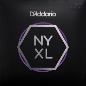 Juego de cuerdas para guitarra eléctrica, nickel wound, medium, 11-49, calibres más grandes para músicos que prefieren flexibilidad moderada y un tono fornido por completo, más flexibles, más proyección, permanecen en tono más tiempo, núcleo de acero de alto carbón resistente a las rupturas, aleación de acero liso, empaque ecológico resistente a la corrosión para mantener las cuerdas siempre frescas.