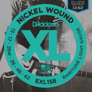Electric guitar strings, ideal for long scale baritone guitars such as Danelectro, round wound with nickel-plated steel for a distinctive bright sound, made in the USA, gauges: plain steel: .013, .017, nickel wound: .026, .036 , .046, .062.