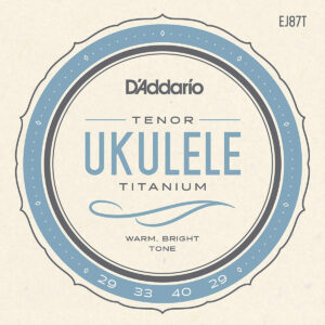 Encordadura para ukelele tamaño tenor, optimizado para afinación estándar GCEA, monofilamento de titanio denso, atractivo tono púrpura translúcido, pulido y suave, mayor brillo y proyección, calibres: .029, .033, .041, .029, fabricadas en USA.