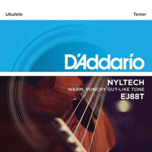 Juego de cuerdas para ukulele tenor, calibres .026, .032, .038, .028, afinaciónestándar GCEA, fabricadas con Nyltech, material exclusivo para el tono tradicional del ukulele, sonido cálido y comparable a la tripa natural, paquete ecológicoy resistente a la corrosión para conservar la frescura de las cuerdas.