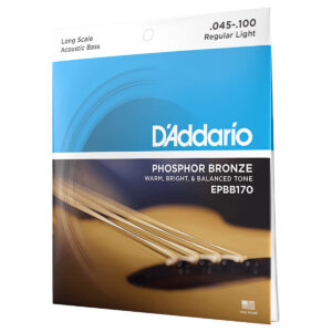 Juego de cuerdas de bronce fosforado para bajo acústico de 4 cuerdas, escala larga, calibre 45-100, tono robusto, profundo y con proyección, paquete ecológico y resistente a la corrosión para conservar la frescura de las cuerdas.