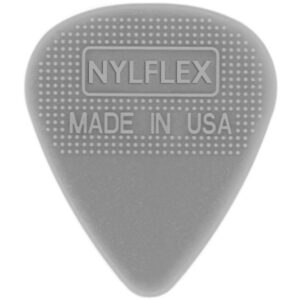 Paquete de 25 púas serie Nyflex, nylon moldeado por inyección, calibre pesado (1mm), auténtico patrón de agarre por ambas caras, sensación y respuesta flexible, tono cálido, ataque más suave para rasgueo y strumming suave.