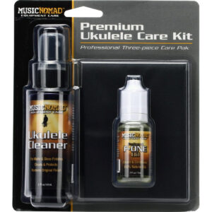 Set of 3 ukulele cleaners, includes Cleaner that helps clean and restore gloss and matte finishes, F-ONE Fretboard Oil that uses natural 100% oils to clean, condition and protect all unfinished fingerboards, also includes a premium high-quality washable 12 x 12 quality lint free, the entire set smells amazing.